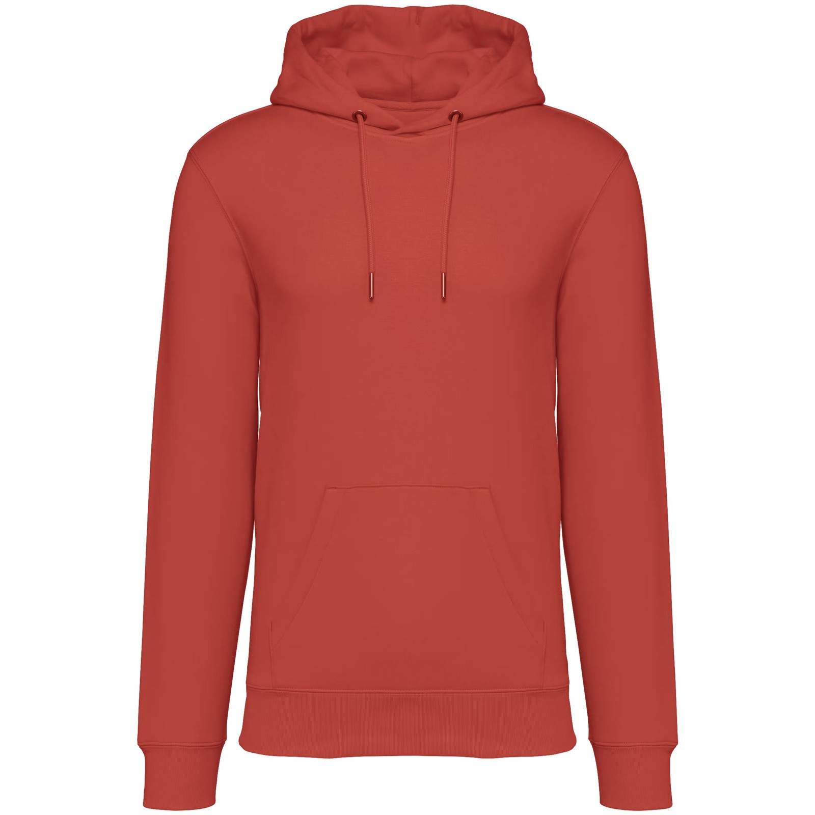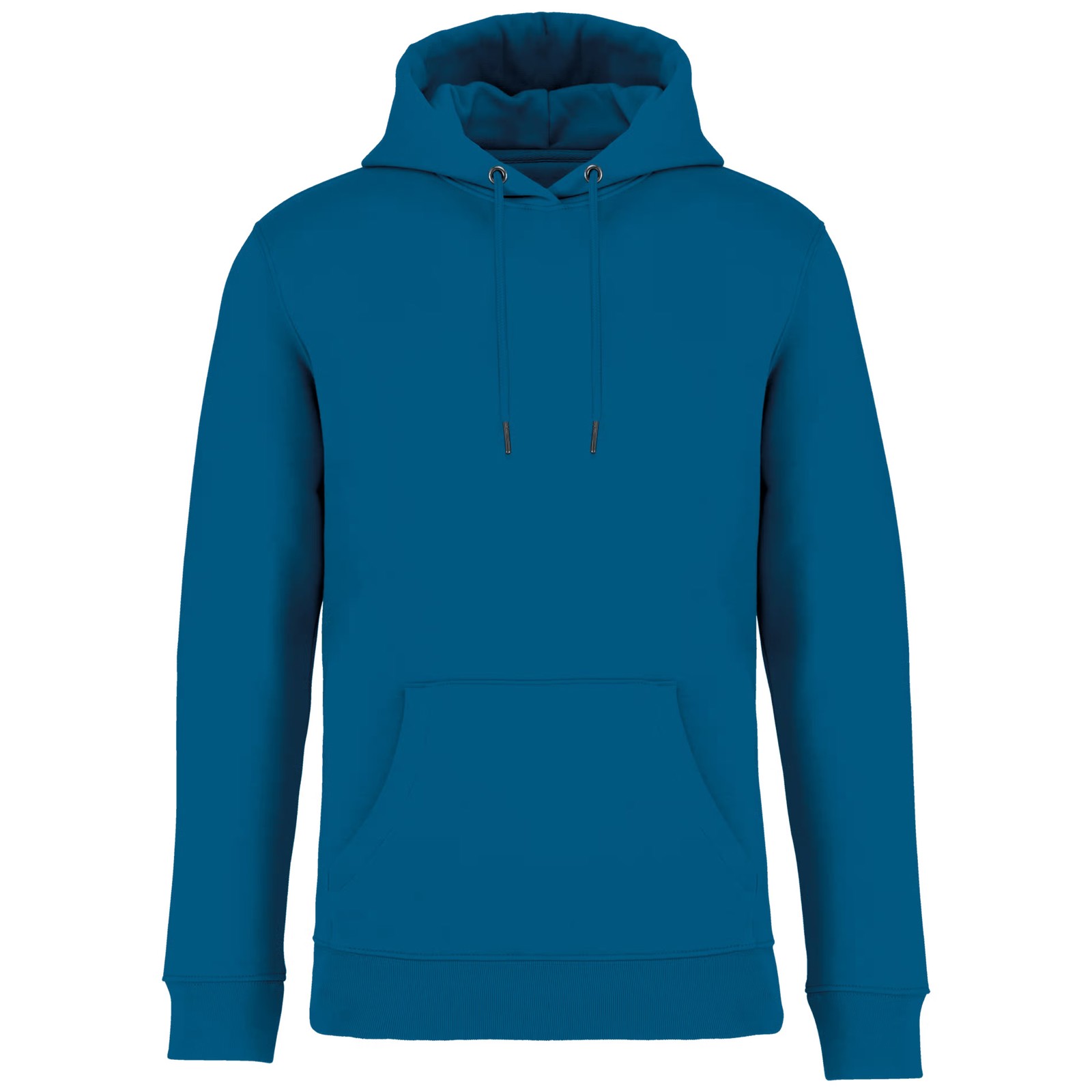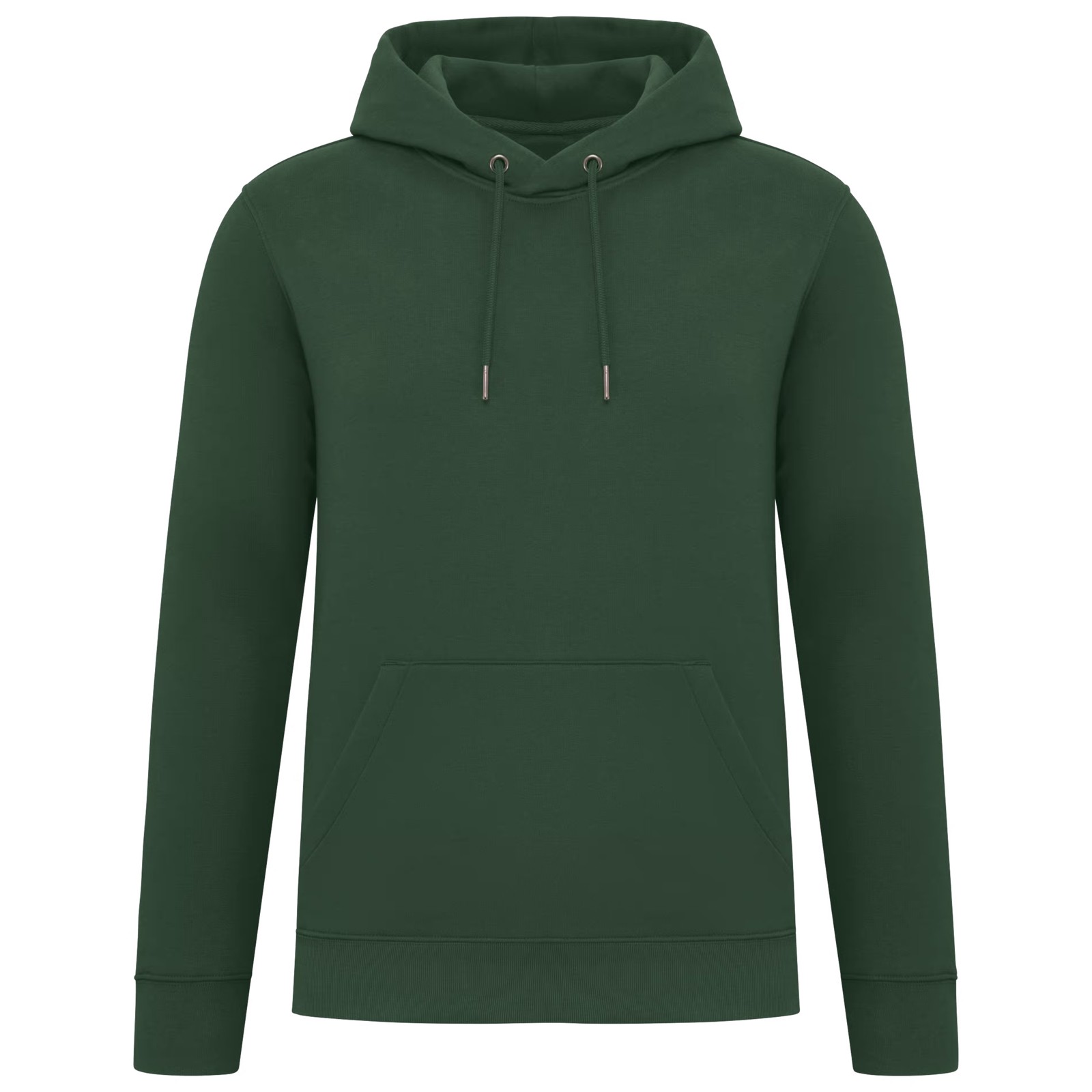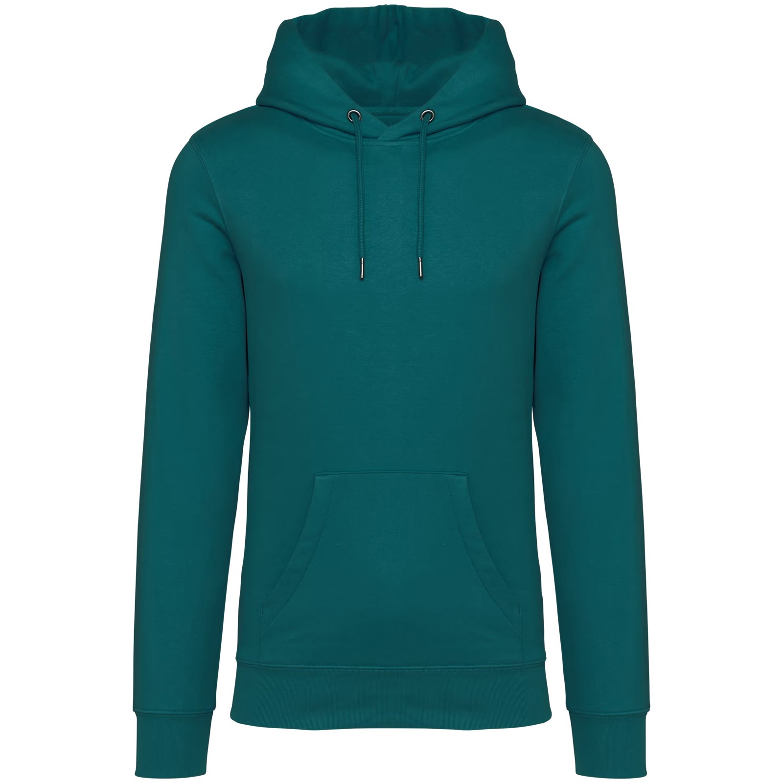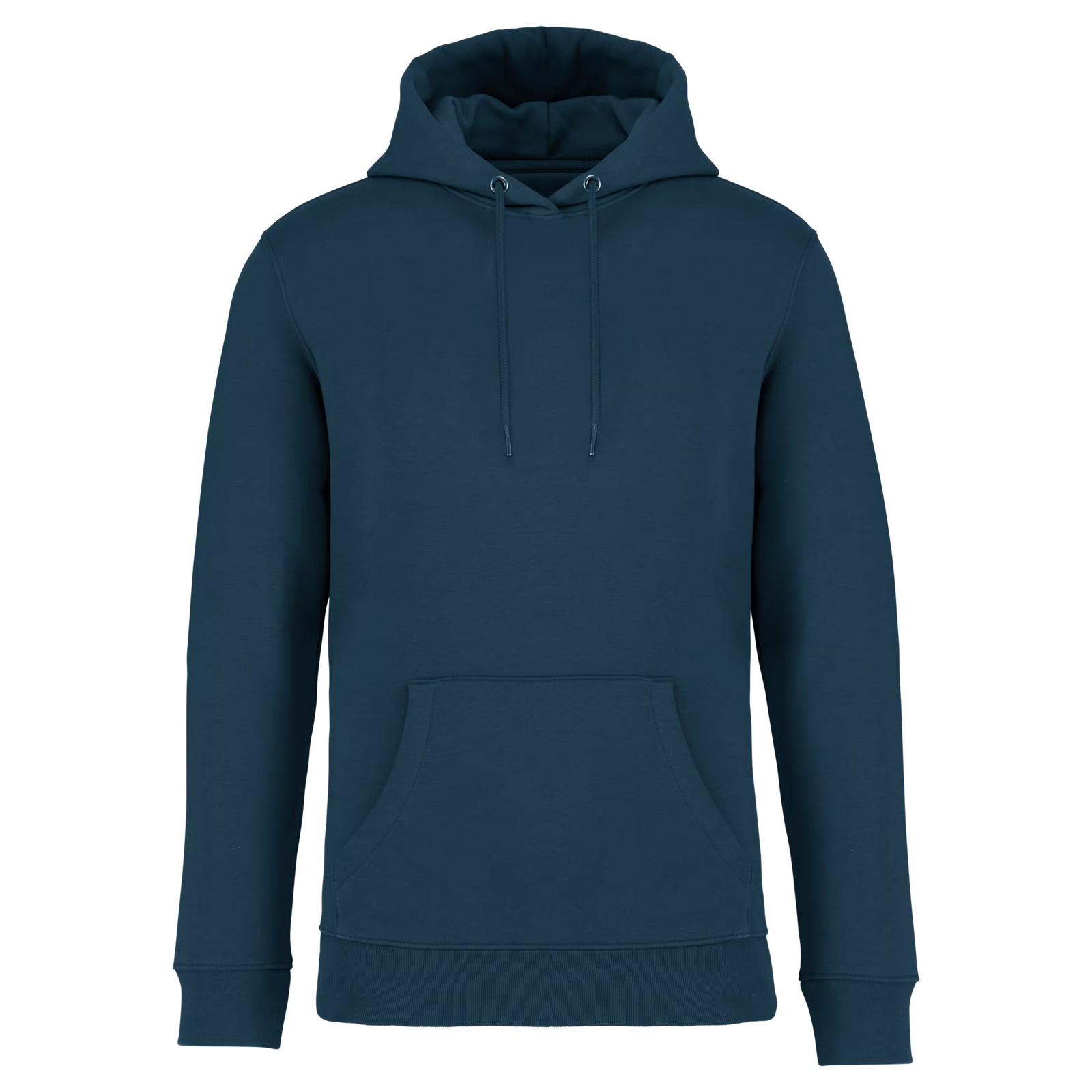 85% algodão biológico / 15% poliéster reciclado pós-consumo. Algodão penteado ringspun. Corte justo. Banho de enzimas. Interior cardado 3 fios LSF (Low Shrinkage Fleece: cardado pré-encolhido). Meia-lua nas costas. Bolso à canguru. Malha rib 1 x 1 no decote, no cós e nos punhos. Pesponto duplo no decote, nas cavas, no cós e na meia-lua. Tapa-costuras no interior do decote nas costas. Capuz forrado no material principal com ponto de reforço no cordão. Cordão redondo com extremidades e ilhós em metal reciclado. A cor Raw Natural distingue-se pelo seu aspecto bruto visualmente texturado, salpicada de partículas finas visíveis a olho nu.