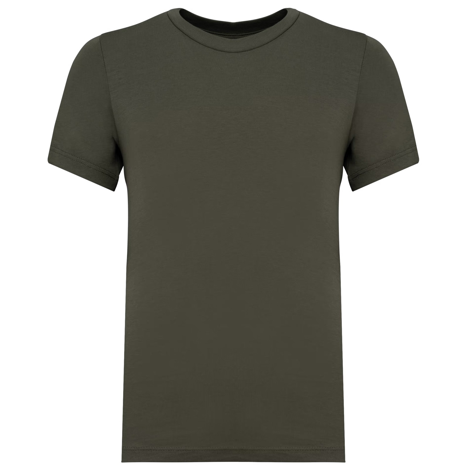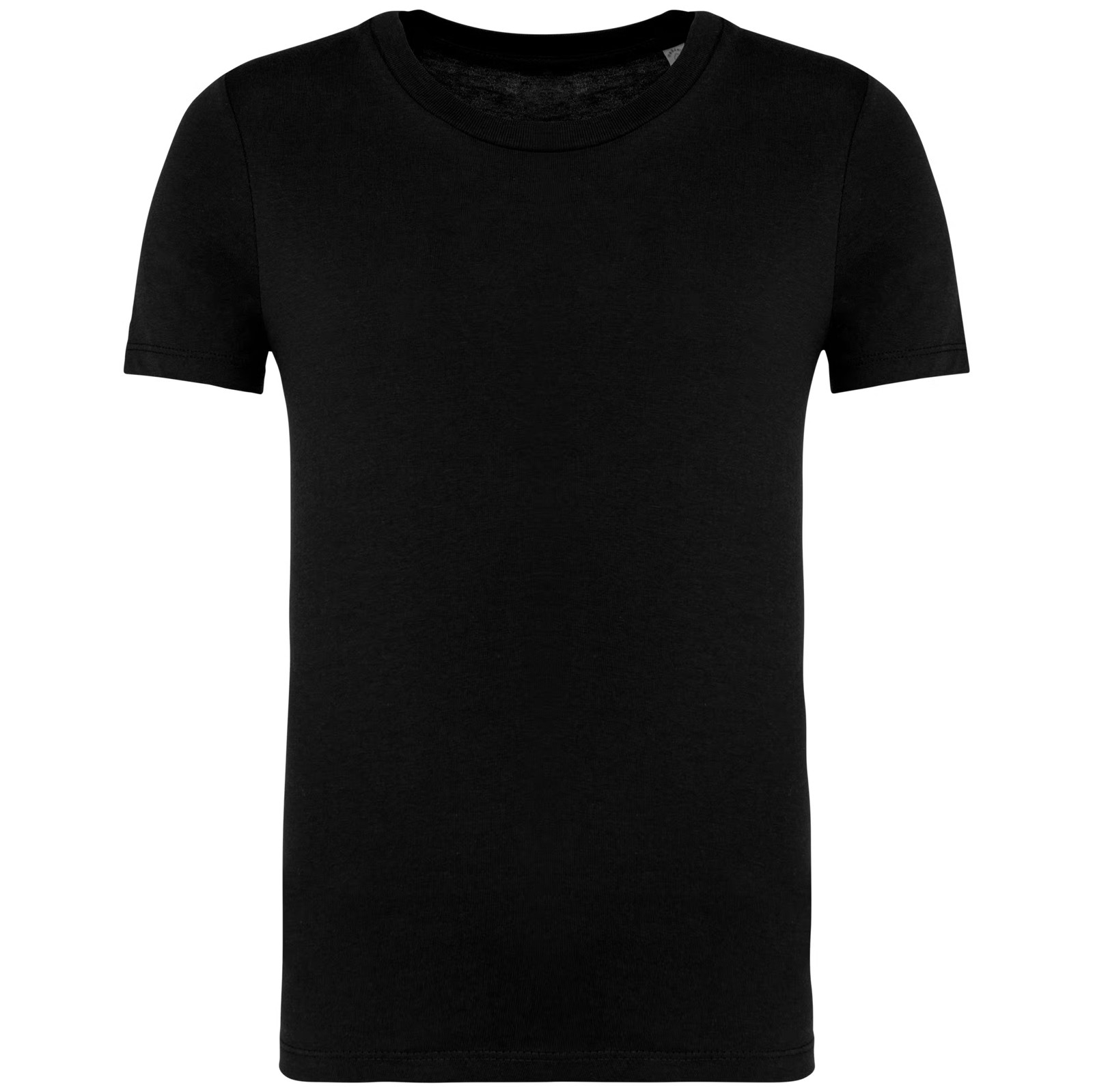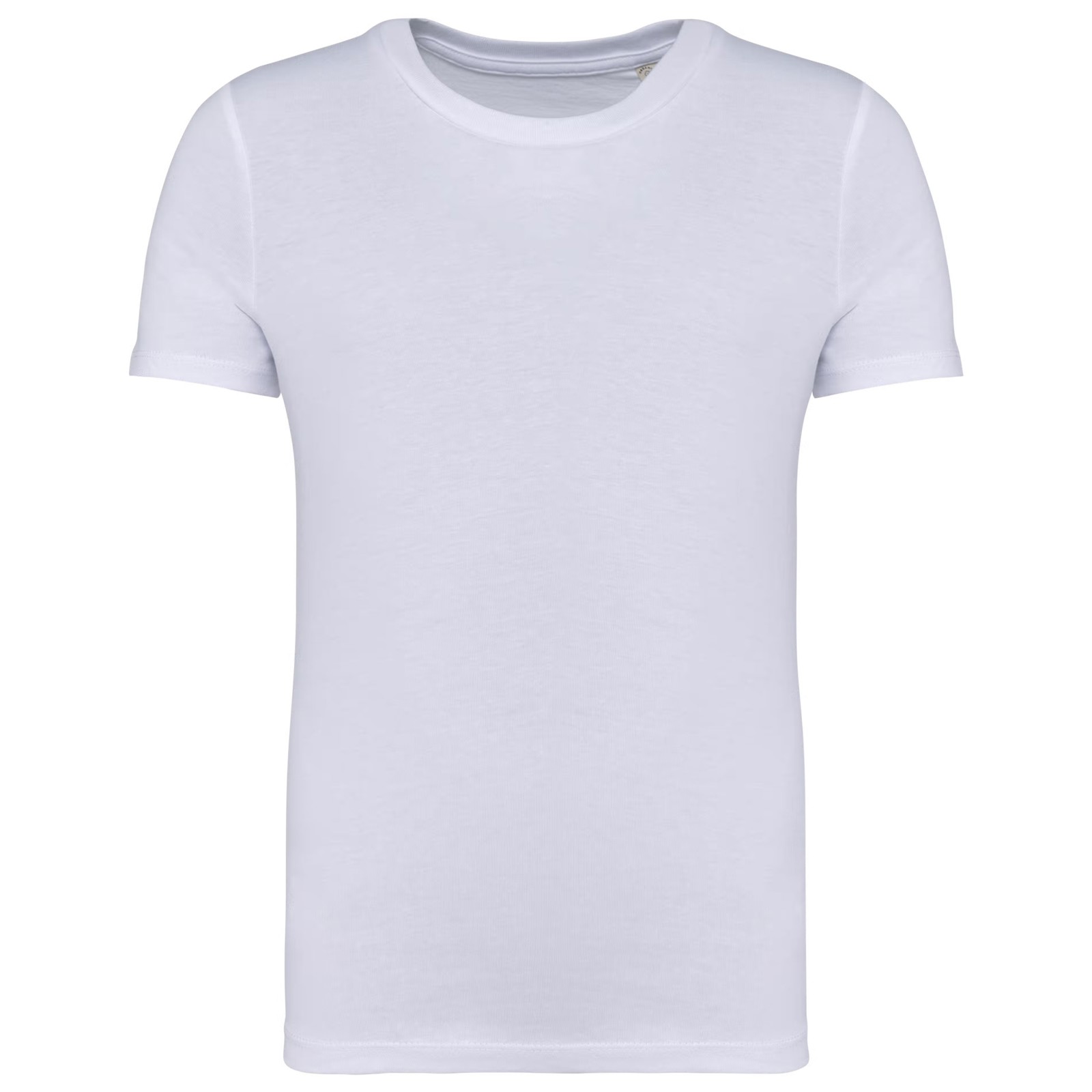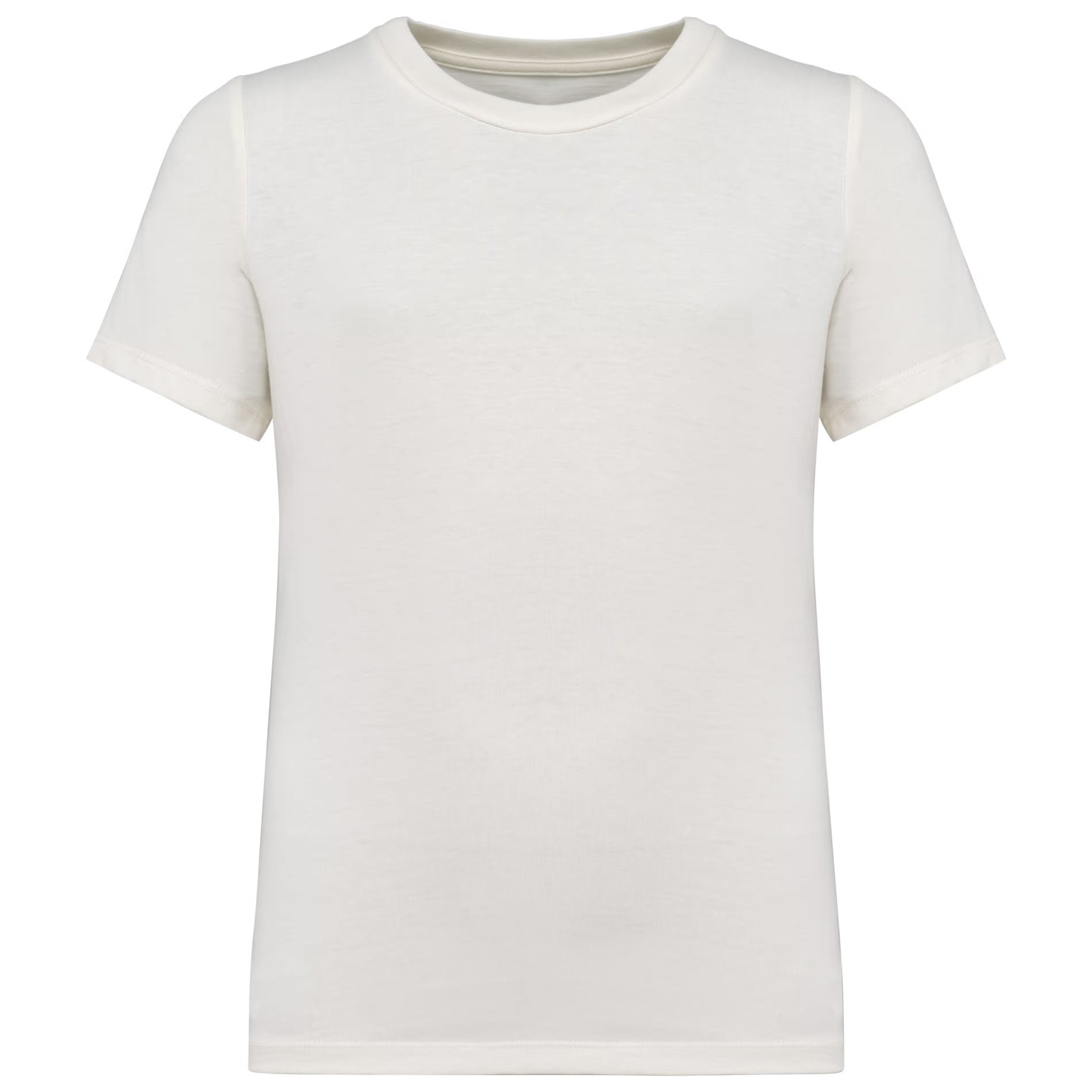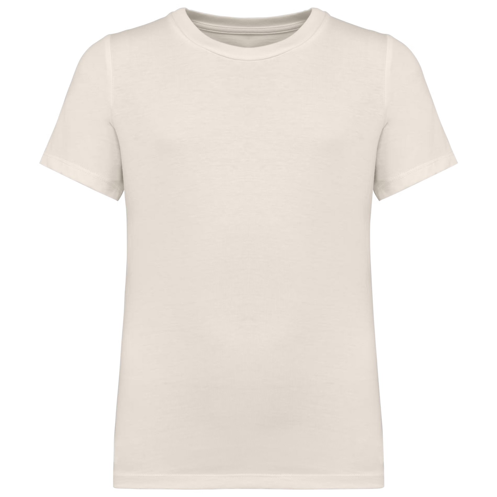 100% algodão biológico. Algodão penteado. Corte direito. Costuras laterais. Toque suave. Tecido com banho de enzimas. Malha rib 1 x 1 no decote. Pesponto duplo nas mangas e na bainha. Reforço nos ombros no material principal. A cor Raw Natural distingue-se pelo seu aspecto bruto visualmente texturado, salpicada de partículas finas visíveis a olho nu.