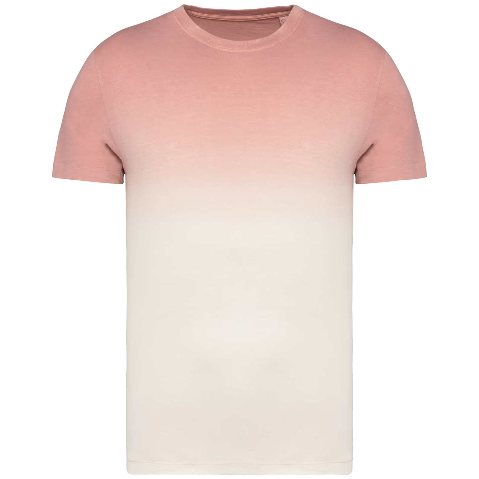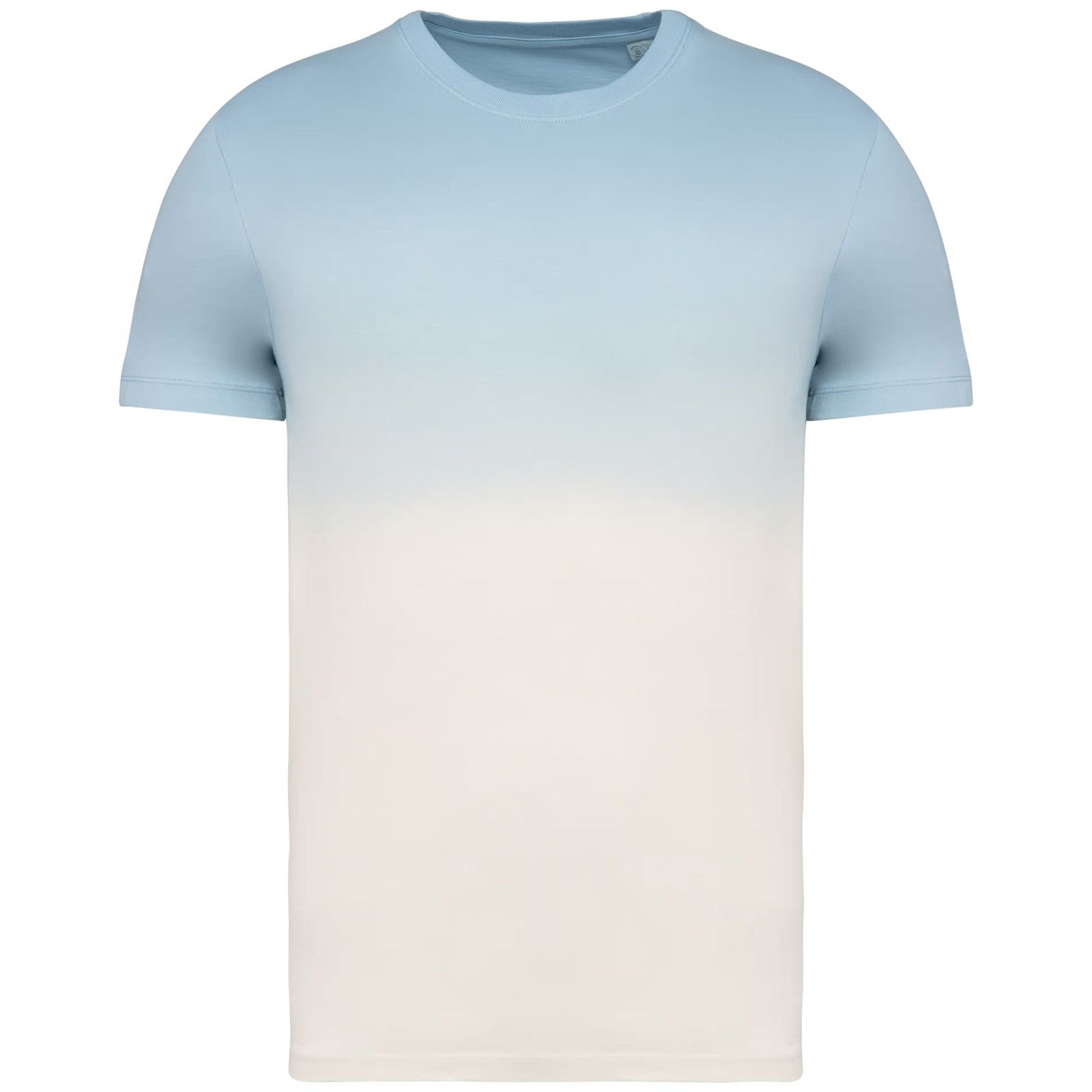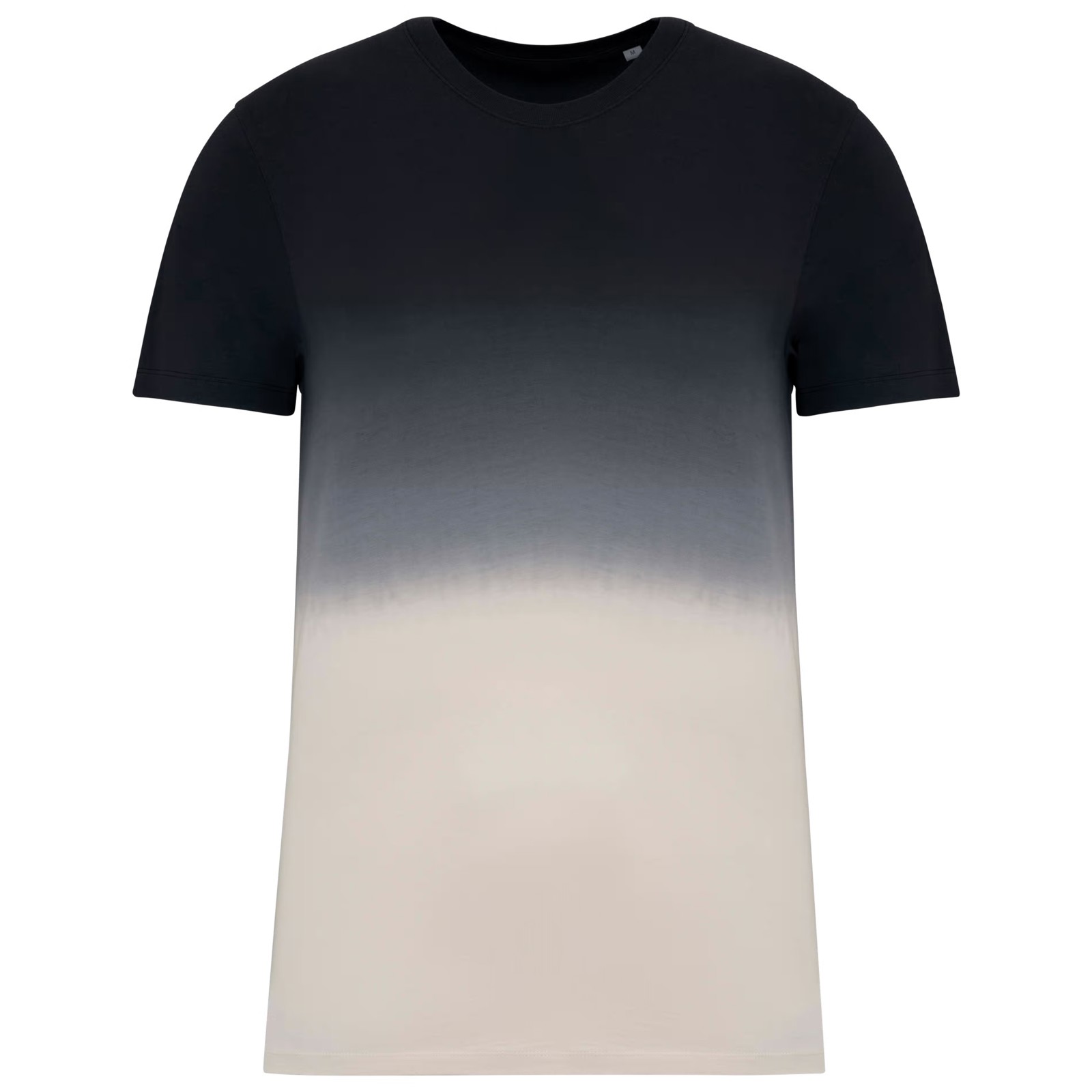 100% algodão biológico. Algodão penteado ringspun. Corte justo. Costuras laterais. Banho de enzimas. Decote em malha rib 1 x 1. Tapa-costuras no interior do decote no material principal. Bainha com costura dupla nas mangas e no cós. Peça tingida com efeito Dip Dye após confecção: as cores podem variar ligeiramente.