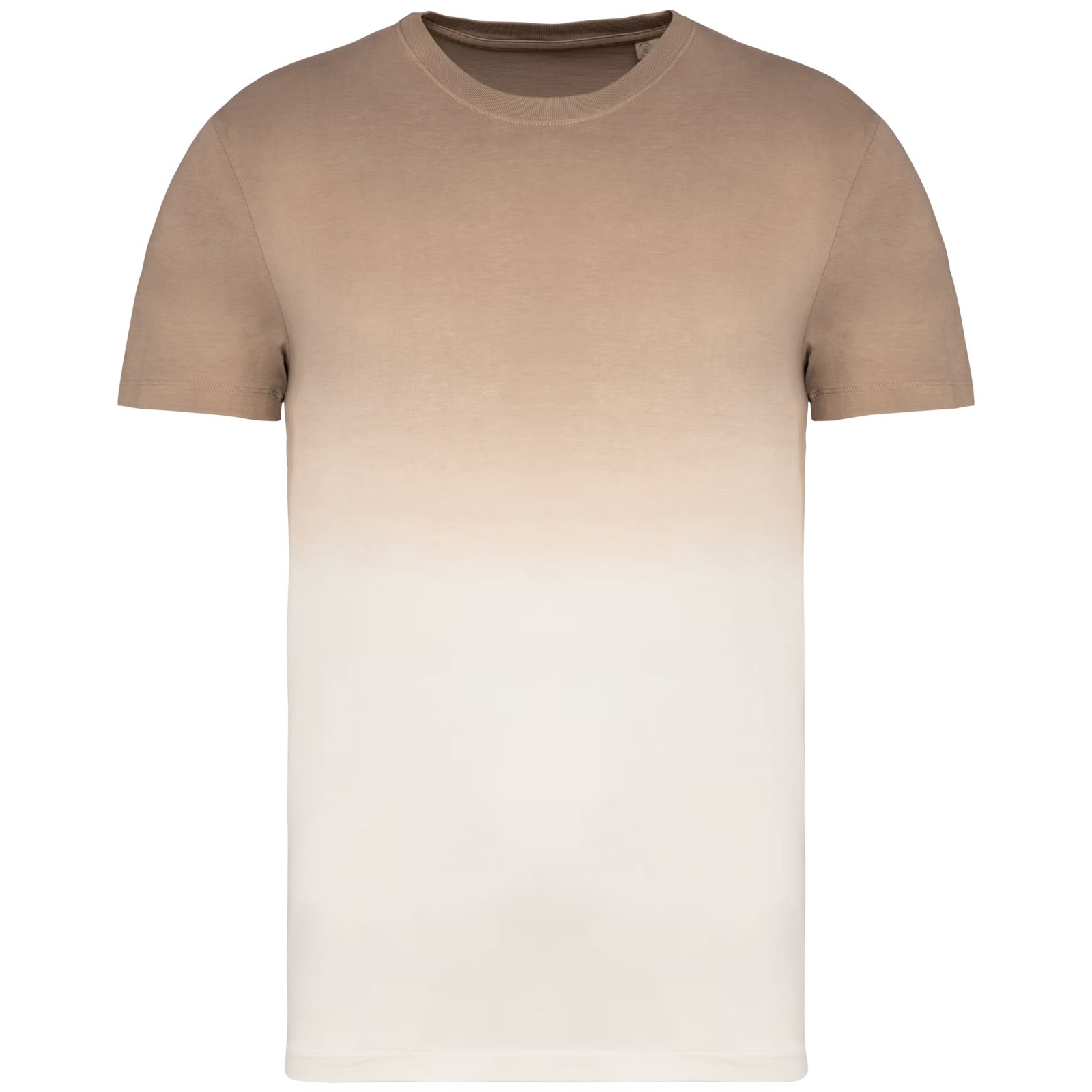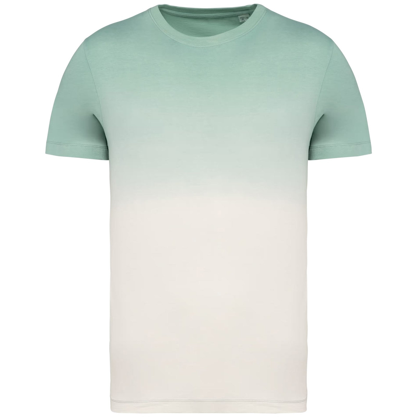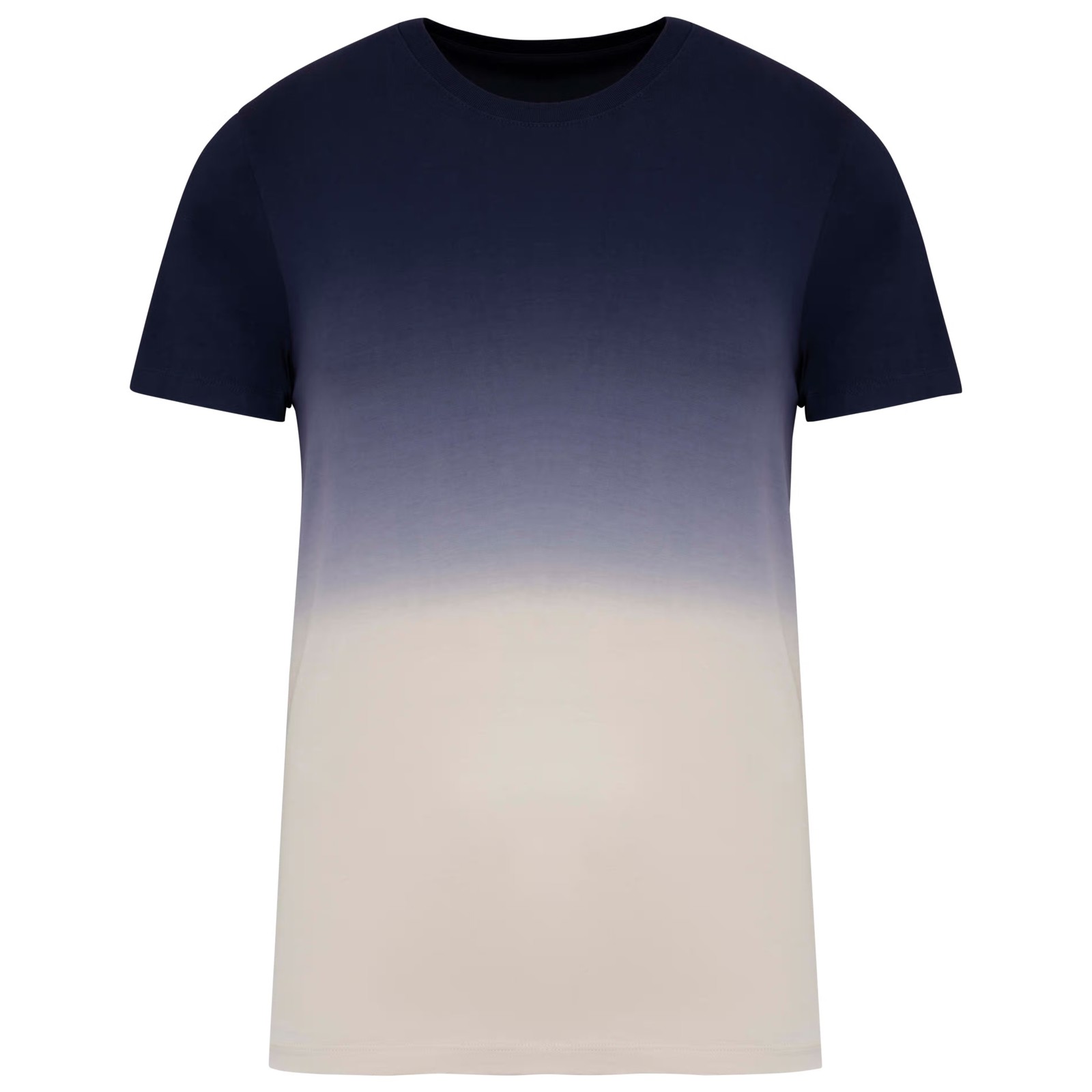 100% algodão biológico. Algodão penteado ringspun. Corte justo. Costuras laterais. Banho de enzimas. Decote em malha rib 1 x 1. Tapa-costuras no interior do decote no material principal. Bainha com costura dupla nas mangas e no cós. Peça tingida com efeito Dip Dye após confecção: as cores podem variar ligeiramente.