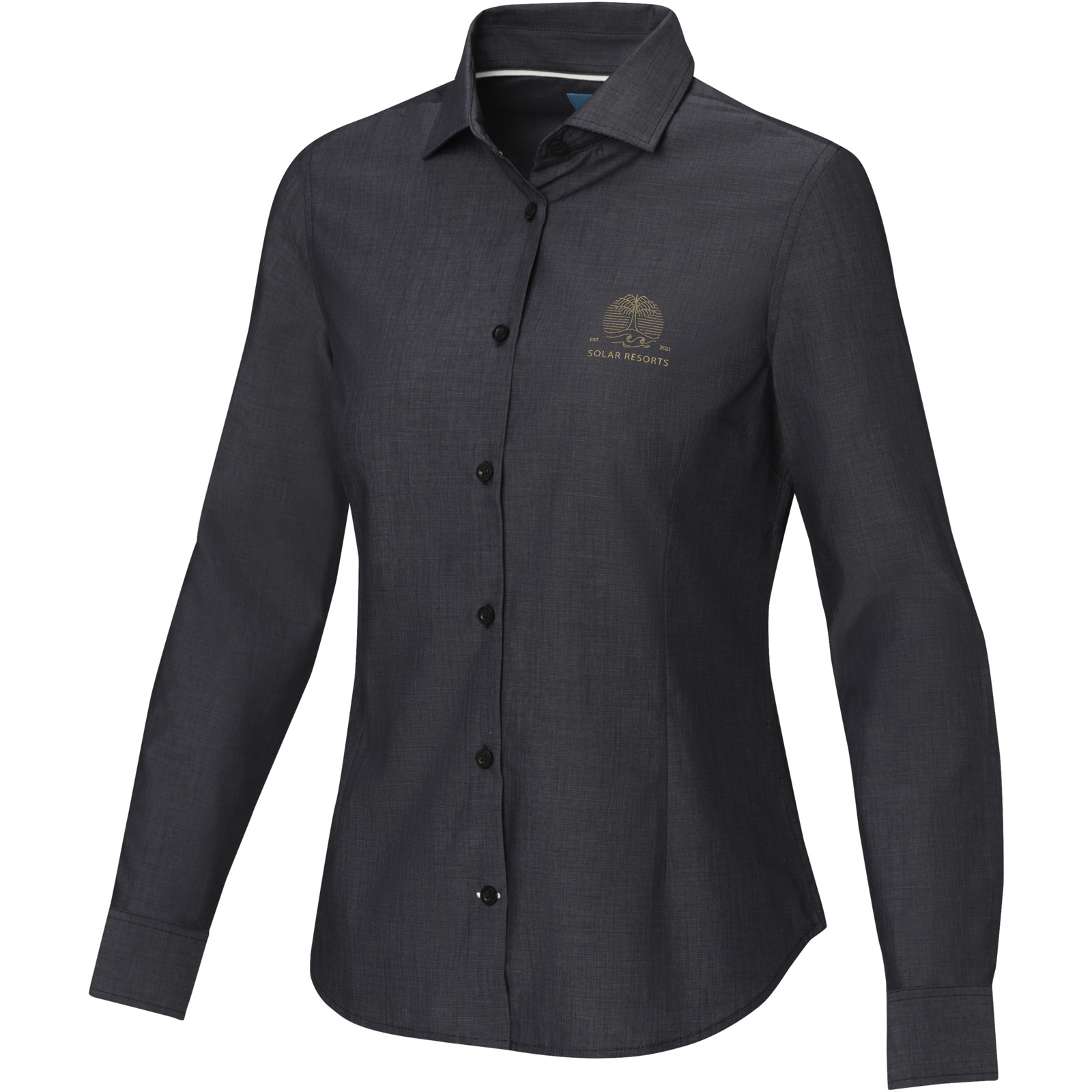 A camisa orgânica de manga comprida Cuprite para mulher - uma escolha sustentável e com estilo. Feita de popelina de algodão orgânico com, esta camisa combina um fabrico ético com um conforto excecional. Apresenta um colarinho semi-aberto que oferece um visual mais descontraído e versátil. A costura de cor contrastante na carcela da manga e na carcela da casa de botão inferior confere um toque subtil de estilo. Esta camisa foi concebida com uma forma ajustada para um look feminino.