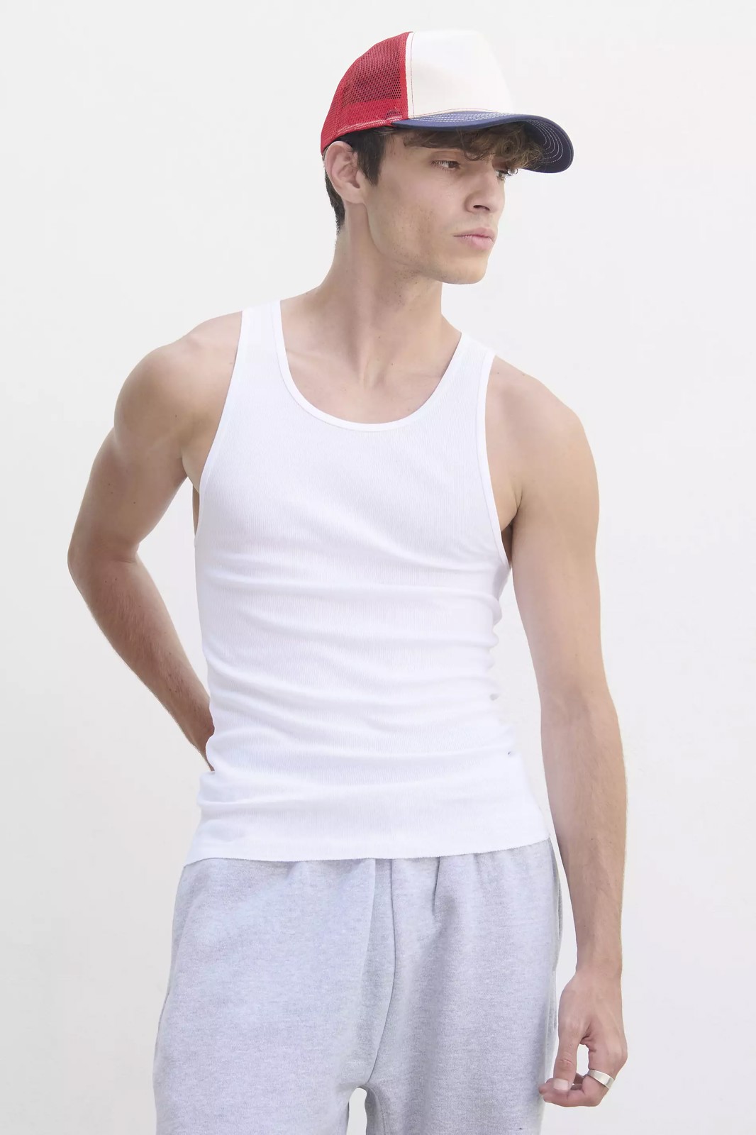 Cortado e cosido Modelo com corte justo com material extremamente flexível Acabamentos das bainhas do decote e das cavas em jersey para maior conforto Acabamento da parte inferior do corpo com costuras retro