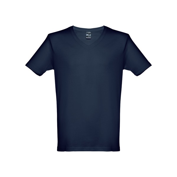 T-shirt para homem em formato tubular e de corte regular em malha jersey 100% algodão (150 g/m²) com fio de algodão cardado (cores: 194, 195 e 199: 60% algodão/40% poliéster). Contém gola em jersey com decote em “V” reforçada no interior com fita em jersey. Costura dupla nas mangas e parte inferior. Tamanhos: S, M, L, XL, XXL