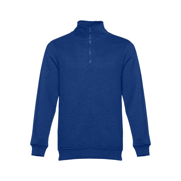 Sweatshirt (unissexo) em 50% algodão e 50% poliéster (320 g/m²) com interior cardado. Contém punhos e cós em Rib e fecho 1/4 à cor. Tamanhos: S, M, L, XL, XXL