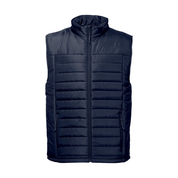 Colete acolchoado (unissexo) em ripstop 100% nylon reciclado (350 g/m²), o interior é resguardado em tafetá 100% nylon reciclado (350 g/m²) para um maior conforto na sua utilização. Abertura frontal com fecho YKK® - marca que recorre a equipamentos modernos e com elevado controlo de qualidade - e puxador. Contém dois bolsos frontais com fecho e puxador e dois bolsos interiores com fecho aderente. Na parte inferior das costas contém um acesso com fecho que facilita a personalização. Tamanhos: XS, S, M, L, XL, XXL, 3XL