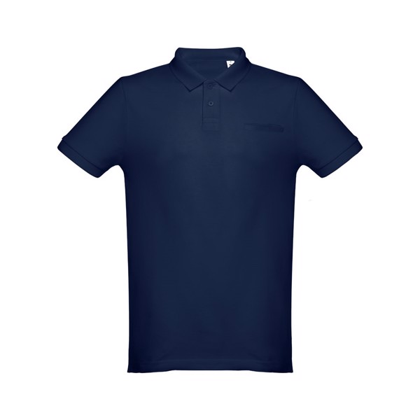 Polo de manga curta para homem em malha piqué 100% algodão cardado (195 g/m²) (cor 183: 85% algodão/15% viscose). Com gola estilizada e mangas em Rib, tendo a gola fita de reforço em piqué. Carcela reforçada com 2 botões à cor (botão suplente inserido na costura interior). Corte moderno com bolso de vivo simples no peito. Peça cortada e cosida com pequenas aberturas laterais na parte inferior do polo. Tamanhos: S, M, L, XL, XXL