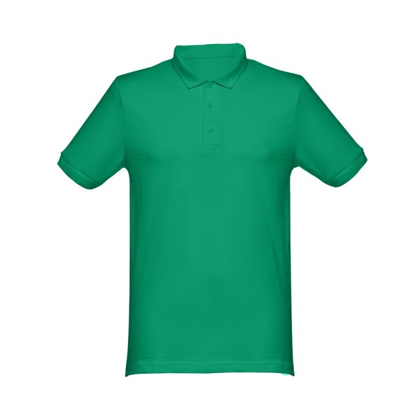 Polo de manga curta para homem em malha piqué 100% algodão cardado (240 g/m²) (cor: 183: 85% algodão/15% viscose). De corte regular com gola e mangas em Rib e fita de reforço na gola em malha piqué. Carcela reforçada com 3 botões à cor (botão suplente inserido na costura interior). Peça cortada e cosida com pequenas aberturas laterais na parte inferior do polo. Etiqueta visível removível. Tamanhos: S, M, L, XL, XXL