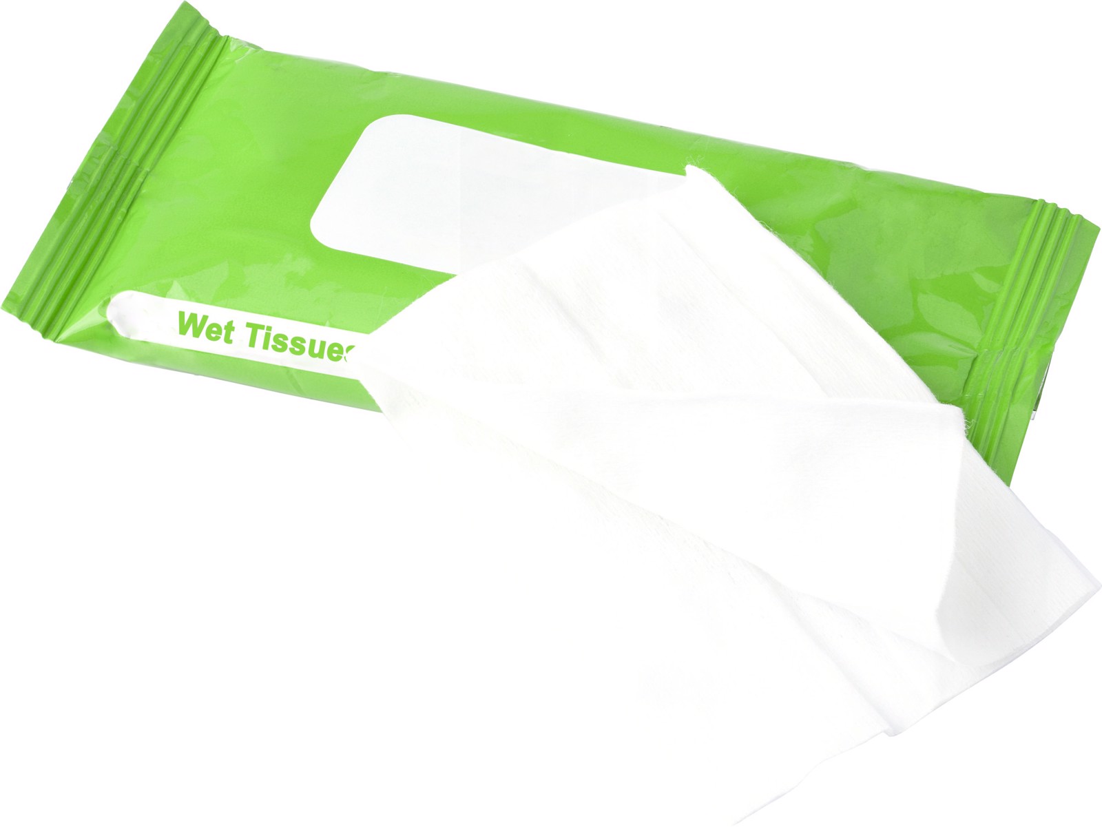 Embalagem hermético con 10 toalhetes húmedas de material non-woven.