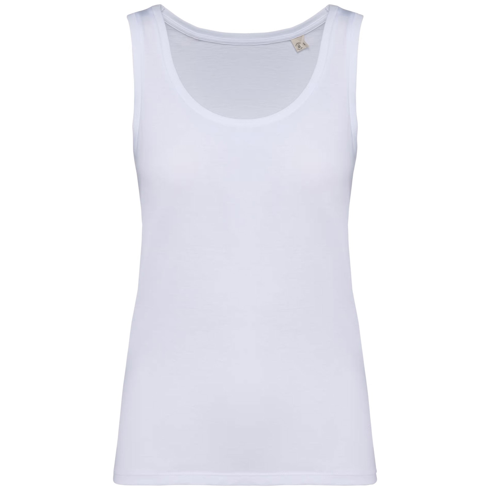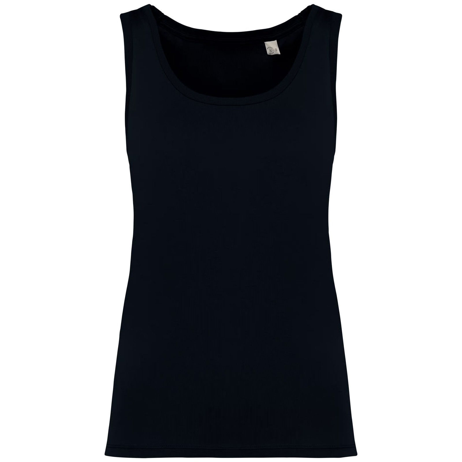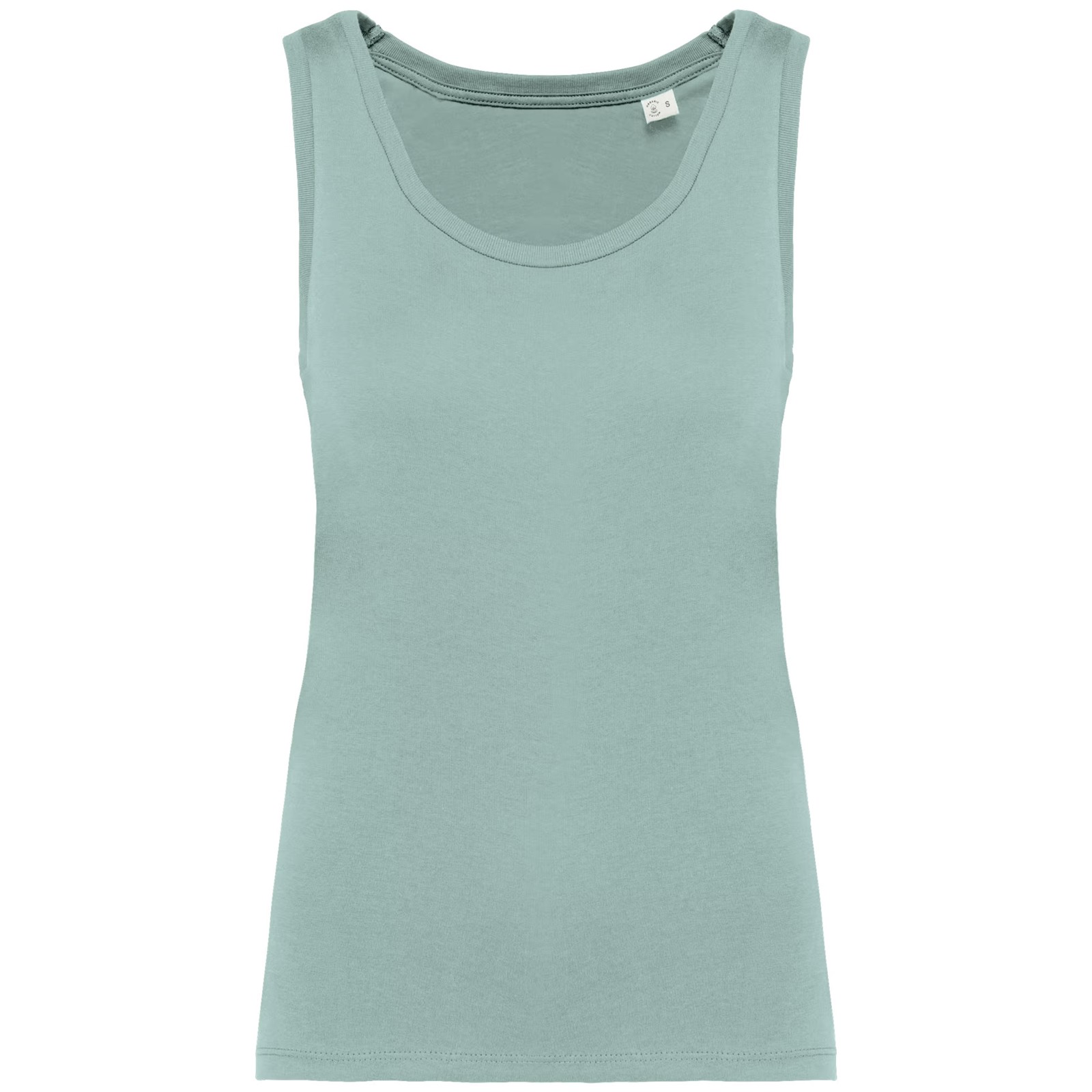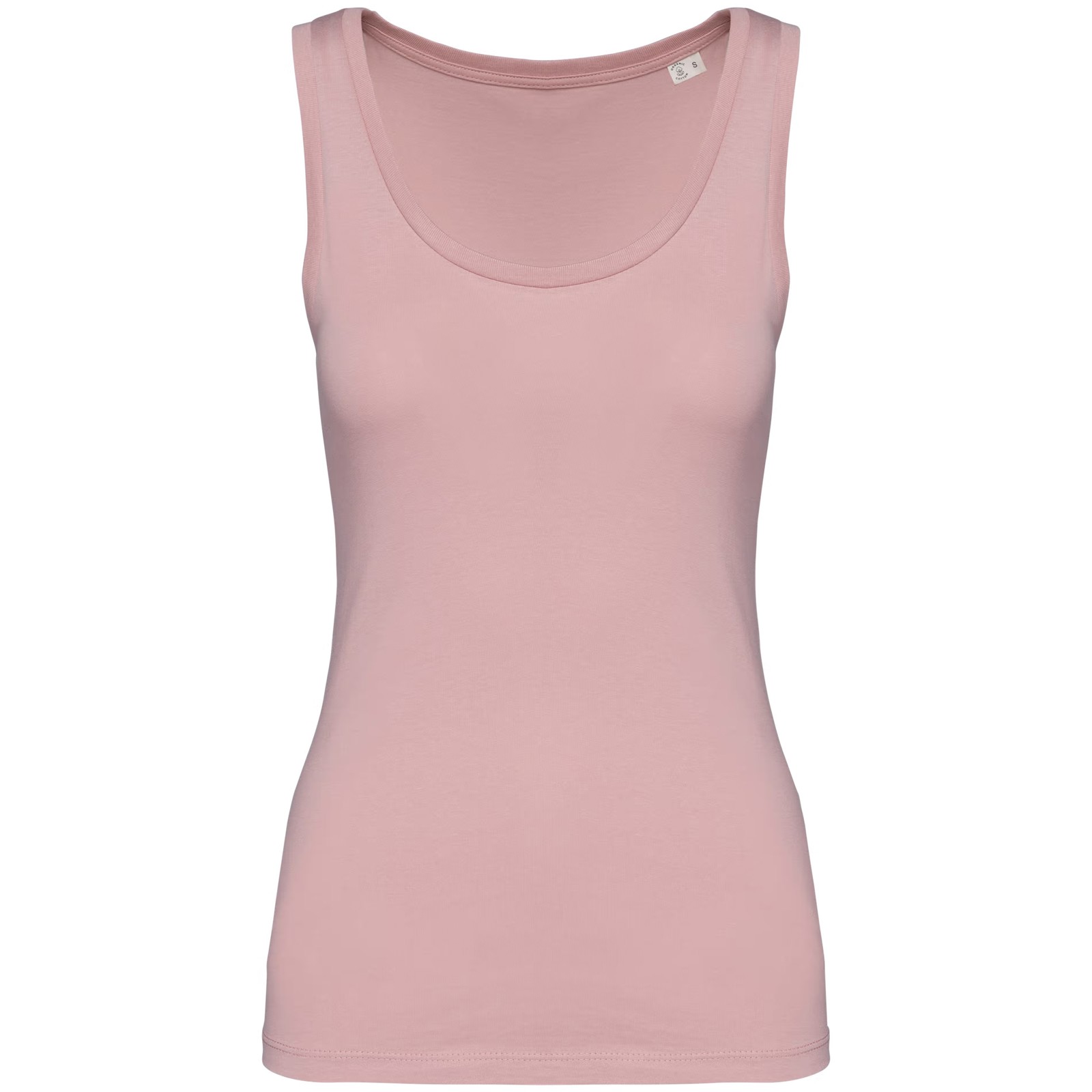 100% algodão biológico. Algodão penteado ringspun. Corte justo. Costuras laterais. Decote e cavas em malha rib 1 x 1. Tapa-costuras no interior do decote no material principal. Bainha com costura dupla no cós.