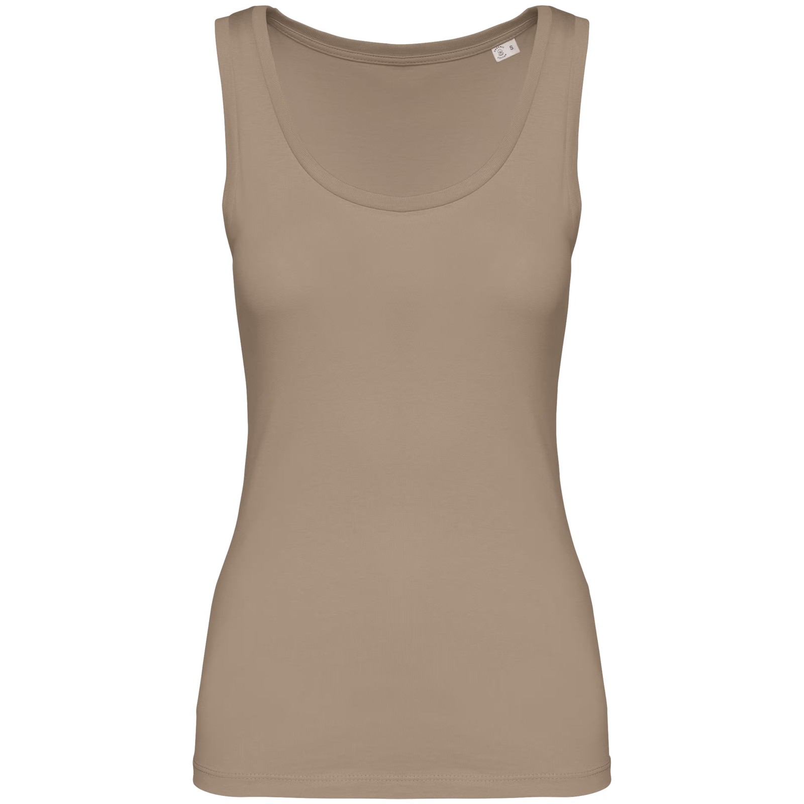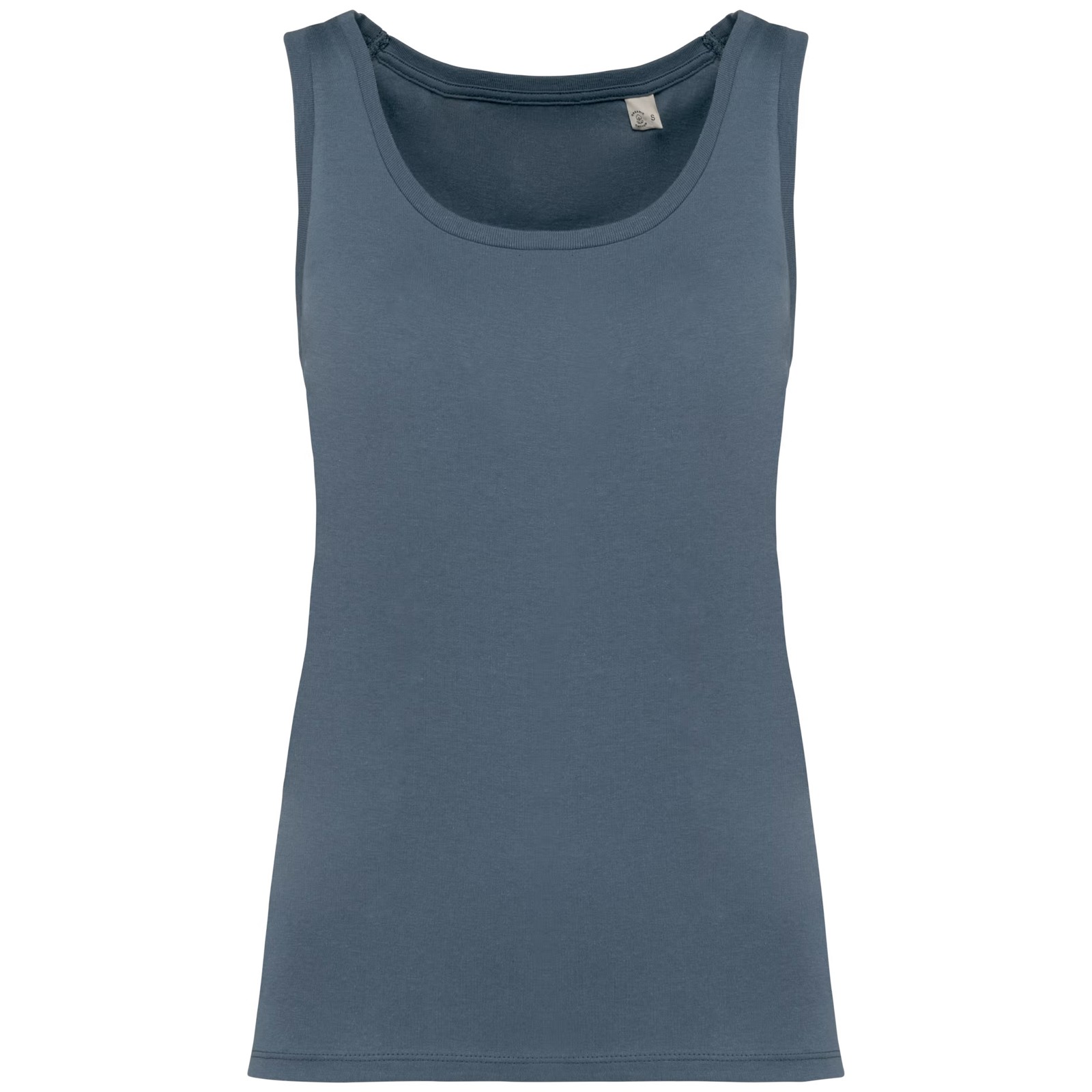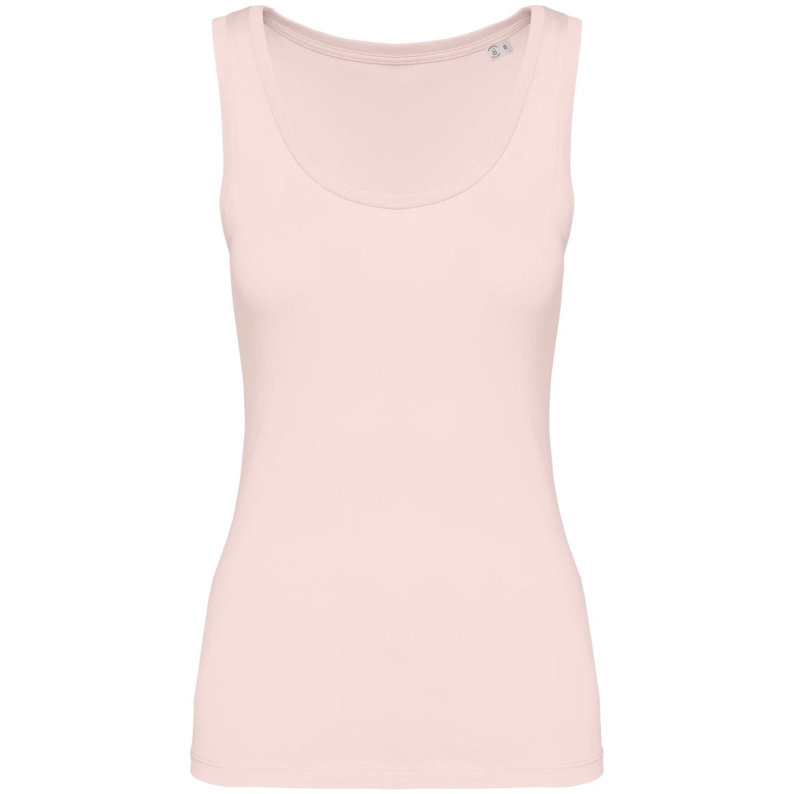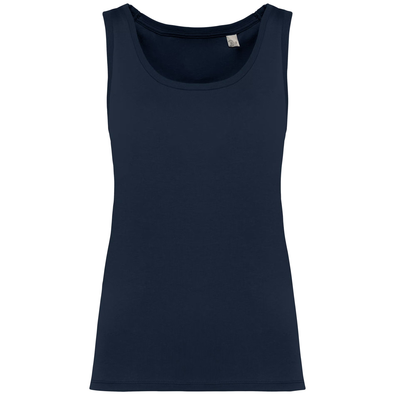 100% algodão biológico. Algodão penteado ringspun. Corte justo. Costuras laterais. Decote e cavas em malha rib 1 x 1. Tapa-costuras no interior do decote no material principal. Bainha com costura dupla no cós.